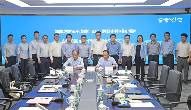 会后,在杨义波书记和朱红兵董事长的见证下,副校长黄鹏代表郑州电力高等专科学校与城发环保能源有限公司总经理、郑州电力高等专科学校优秀毕业生柴继业签订了2022届毕业生校企联合培养协议;副校长胡斌代表郑州电力高等专科学校与城发环境股份有限公司副总经理易立强签订了深化校企战略合作协议。