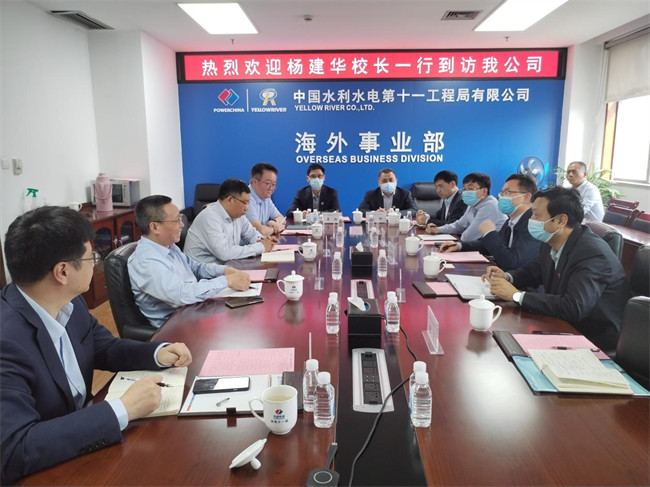 同期,校长杨建华赴中国水利水电第十一工程局有限公司走访调研,水电十一局副总经理兼海外部副总经理雷敬义,海外部副总经理张建仓、海外部人资经理肖庆、综合办主任孙鹤飞,郑州电力高等专科学校三级职员杨小琨、招生就业处、国际教育部、电力工程学院有关负责人进行了深入交流洽谈。