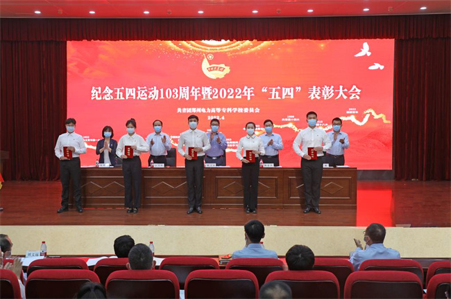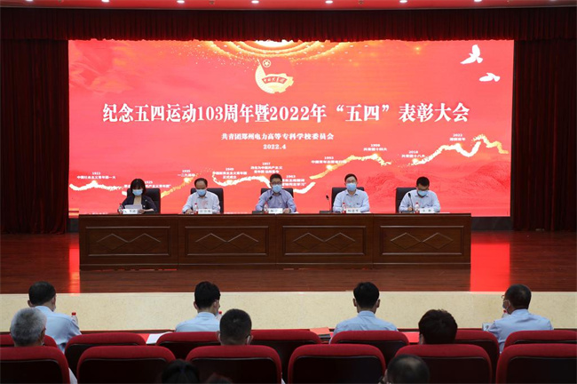 在五四青年节即将到来之际,郑州电专纪念五四运动103周年暨2022年“五四”表彰大会于4月26日下午在东阶梯教室隆重举行。学校党委书记杨义波,校长杨建华,党委副书记、副校长宗万伟,副校长黄鹏出席,会议由高级管理师周明霞主持。学校党委办公室、党委宣传部、团委、党委学工部(学生处)、招生就业处等职能部门负责人、各学院党总支书记、主管学生工作副院长、辅导员以及团员青年代表参加会议。
