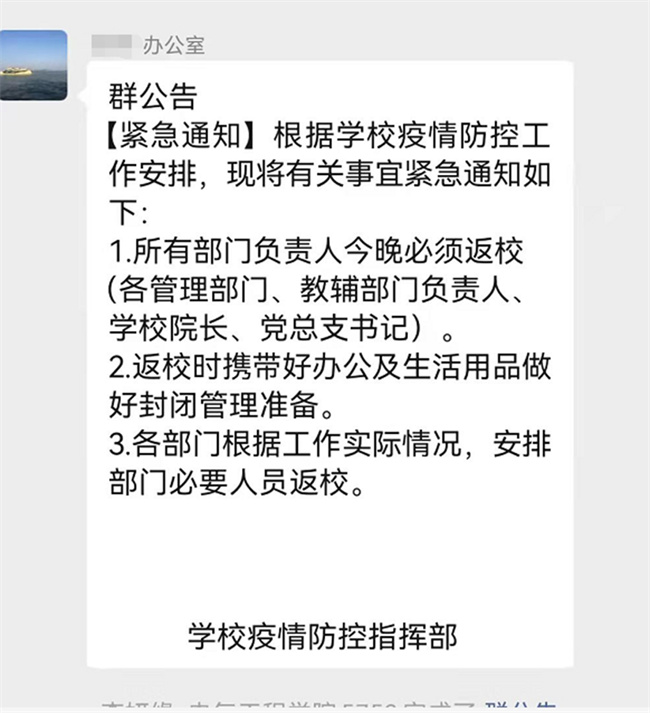 学校全体学生工作人员也闻令而动,迅速返校。所有学生工作人员下沉宿舍、下沉餐厅、下沉校园,做好学生思想引导、心理关怀,协调解决学生的诉求和关心关切的问题。