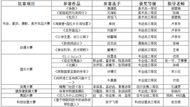 本届大学生科技文化艺术节以网上选拔为主,自活动启动以来,郑州升达经贸管理学院高度重视,校团委与二级学院通力合作、认真筹备,做好参赛作品的选拔、排练、录制等工作,全校各级团组织和广大青年学生积极参与,用富有思想性、时代性的艺术作品,为学校争得了荣誉。