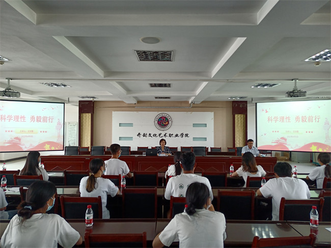 6月5日上午,开封文化艺术职业学院校长沈洁霞以《科学理性 勇毅前行》为题,为50余名师生上了一堂立意高远、主题明确、内容丰富、情真意切的思政课。思政课由行政办公室主任赵占清主持。