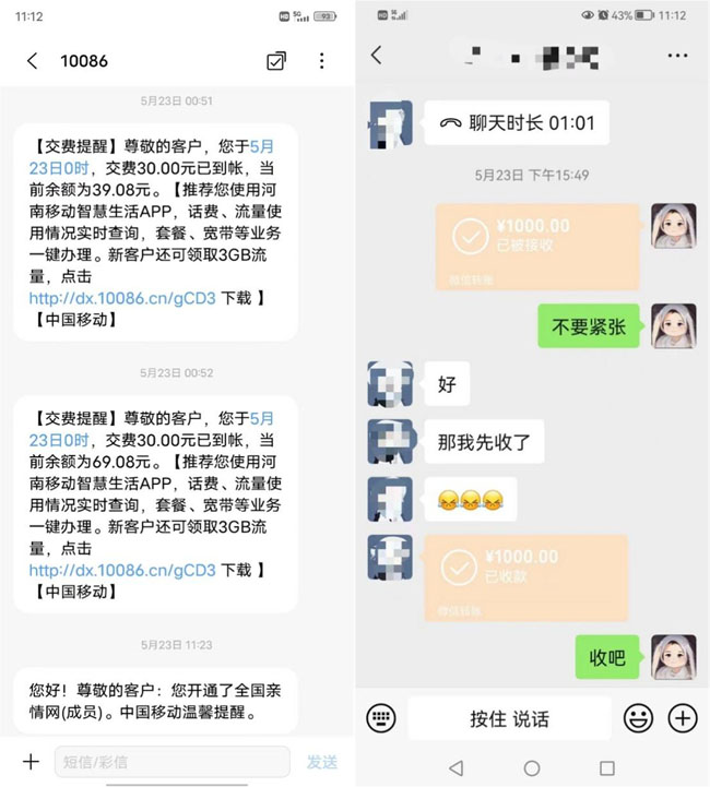 副书记知道这件事情后,非常感动,又给张师傅充了100元话费表示感谢。