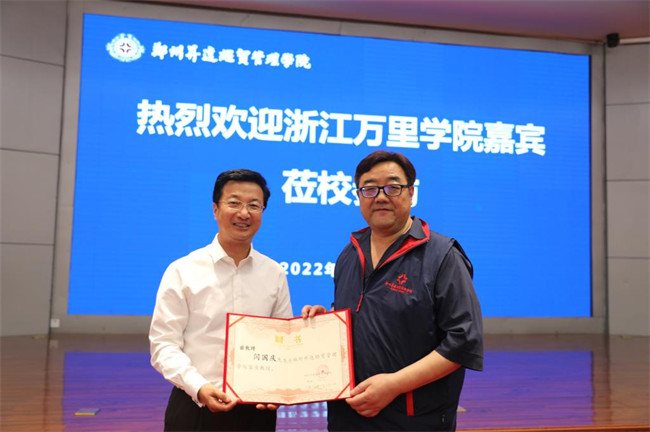 张欣首先对闫国庆一行的到来表示热烈欢迎,简要介绍了浙江万里学院的情况,回顾了两校之间的深厚友谊,并再次郑重感谢浙江万里学院为学校的合格评估工作和应用型人才培养模式构建提供的大力支持和无私帮助。随后,张欣简要介绍了学校的历史沿革、人才培养、办学特色等基本校情。