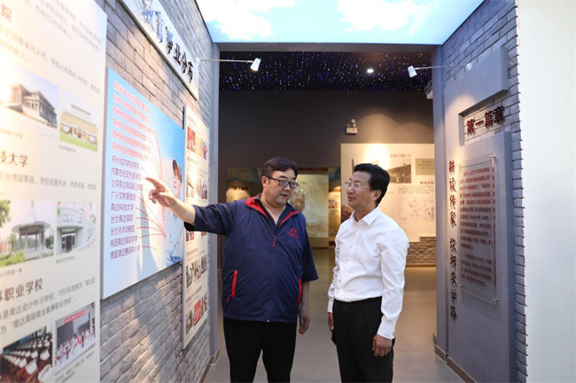 会后,闫国庆一行在校领导陪同下参观了学校校史馆、综合实训大楼等场所。(郭玉格)