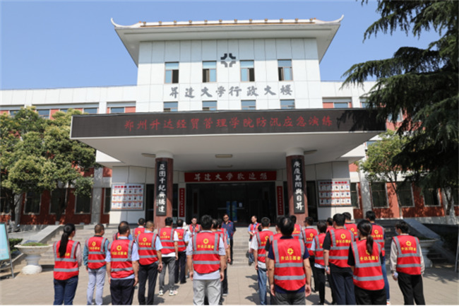 为进一步做好学校防汛抢险紧急处置工作,最大程度保障师生生命财产安全,确保校园安全稳定,6月15日下午,郑州升达经贸管理学院开展防汛抢险应急演练,执行董事王新奇、副校长兼工会主席张金安、副校长兼总务长张其武到场指导演练,总务处事务科、保卫科、营缮科联合学务处宿管科等人员组成救援小组参加活动。
