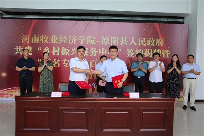 雄关漫道真如铁,而今迈步从头越。共建乡村振兴服务中心落地生根,“政府+平台+高校”的新型社会服务模式初步形成,校政企一揽子合作协议顺利签署,专家团队陆续走乡入企开展帮扶工作,推动着学校“双百”工程有序、有效、顺利实施。未来,我们期待:“中心”建设与“双百”工程实施相得益彰,盛开鲜艳之花、喜结累累硕果,为传统产业的转型升级、新兴产业的培育发展、未来产业的谋篇布局,为教育事业的高质量发展,再谱新篇、再建奇功,以优异成绩献礼党的二十大!(河南牧业经济学院供稿)