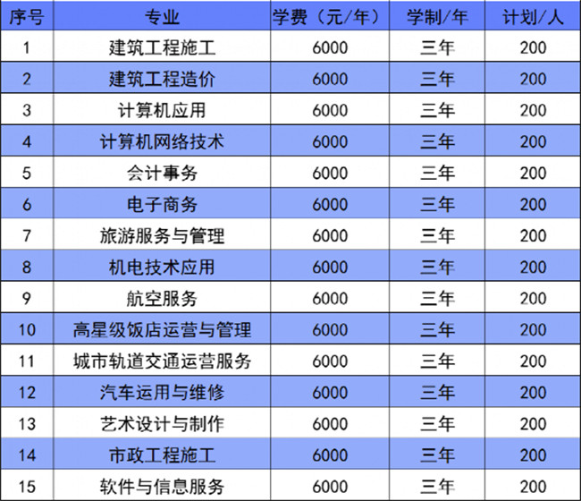 注:专业和招生计划以省教育厅公布为准,具体收费标准以发改委公布为准。