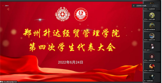 6月24日上午,郑州升达经贸管理学院召开第四次学生代表大会。校党委副书记、副校长兼工会主席张金安,党委学生工作部、学生处、武装部部(处)长张红阳、校团委书记李霄锋出席开幕式,出席开幕式的还有作为特邀代表的校团委工作人员、各学院团委负责人,以及来自全校各单位的252名正式代表。开幕式由校团委副书记李松涛主持。本次会议采用线上方式进行。
