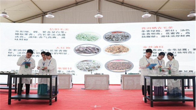 6月26日,郑州升达经贸管理学院培训中心副主任兼本相茶文化学院副院长刘昊和本相茶文化学院副院长梁书山率6名选手参加评茶员表演项目。为高水平展现评茶员工种的技能水平,本次评茶表演赛共设置四个环节——分别为辨外形识茶、品鉴茶汤等级、茶汤对茶样、斗沏泡茶。选手按照规范的竞赛要求进行操作,体现了各位选手评茶技能水平,同时也通过表演赛向大家展示审评的科学性、专业性、趣味性,让更多的人了解茶叶审评。