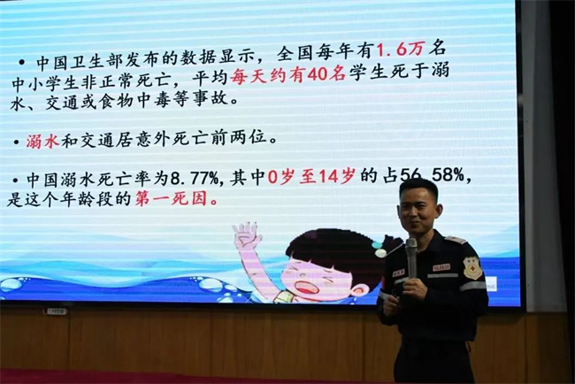 县红十字水上救援队宣讲师刘庆果为全校师生们开展了红十字防溺水知识讲座,列举了各地发生溺水的真实案例,分析了事故发生的原因,讲解了溺水时的应急处置方法、注意事项等,以此警示学生们时刻注意自身安全,防范溺水风险。号召全体学生主动学习和掌握安全常识,积极宣传所熟知的安全小知识,以力所能及的方式为小伙伴们拉起思想警戒线。