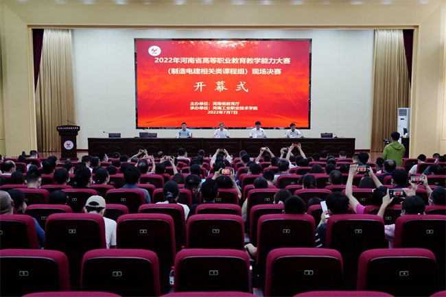 7月7日-9日,由河南省教育厅主办、河南工业职业技术学院承办的2022年河南省高等职业教育教学能力大赛(制造电建相关类课程组)现场决赛在学校孔明路校区举办。来自全省26所院校的52支团队参赛。