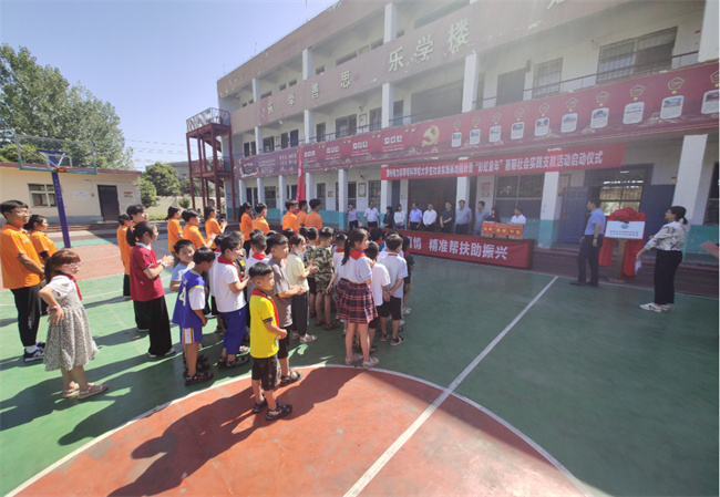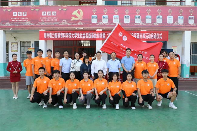 会后,葛寨小学校长位莹刚和学校高级管理师周明霞共同为郑州电力高等专科学校大学生社会实践基地揭牌;与会领导参加“彩虹童年”暑期社会实践支教活动启动仪式并向葛寨小学学生捐赠图书及学习用品。