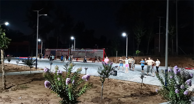 段东村文化广场建成后,驻村工作队为做好党建文化宣传,在文化广场上翻新设计制作8个宣传展板,宣传党务政务、社会主义核心价值观、移风易俗及村规民约等内容。为了方便村民锻炼,驻村工作队在广场安置乒乓球台,安装健身器,配套建设游园一个。新安装的太阳能路灯照亮了广场,也照亮了老百姓的心,方便了村民夜晚跳舞、聊天、嬉戏,使段东村村民也有了精彩“夜生活”。