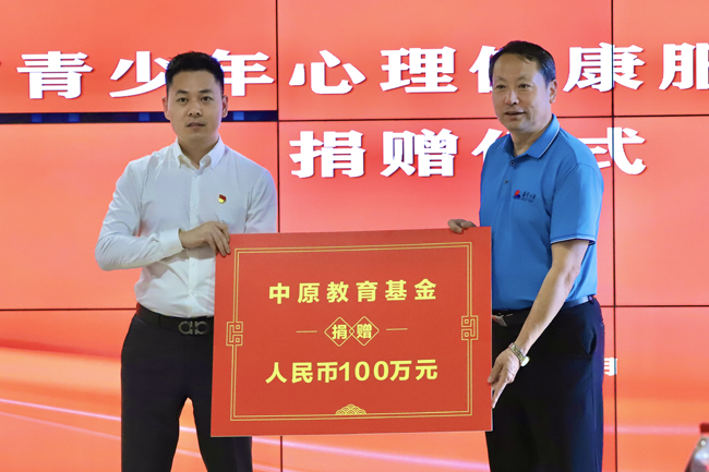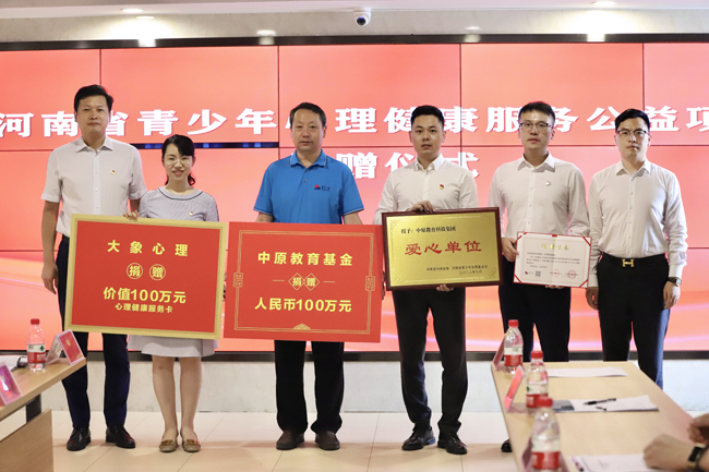 7月27日,河南省青少年心理健康服务公益项目捐赠仪式在郑州举行,中原教育基金携手大象心理向河南省青基会捐赠人民币100万元、价值100万元心理健康服务卡。