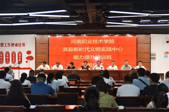 7月29日至30日,河南职院在淇县举办“新时代文明实践中心建设能力提升”培训班。校党委副书记、纪委书记田华,淇县县委常委、宣传部部长、副县长李英锋出席开班仪式并分别讲话。学校党委宣传部、文化旅游学院、数字创意与设计学院、音乐学院相关负责人及授课教师,淇县县委宣传部、县文广旅局、教体局、城管局相关负责人及受训学员代表参加开班仪式。