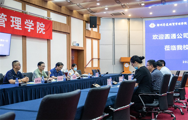 2022年8月3日上午,圆通科技股份有限公司董事长王民权、副总经理吴宗安、付慧杰等一行来升达交流合作。座谈会在校国际会议厅举行。郑州升达经贸管理学院副校长兼教务长吴益民,董事会办公室主任、科研处处长杨存博,双创学院院长、升达圆通科学工作院院长王铮出席座谈会,双创学院相关同志参加座谈。座谈会由王铮院长主持。