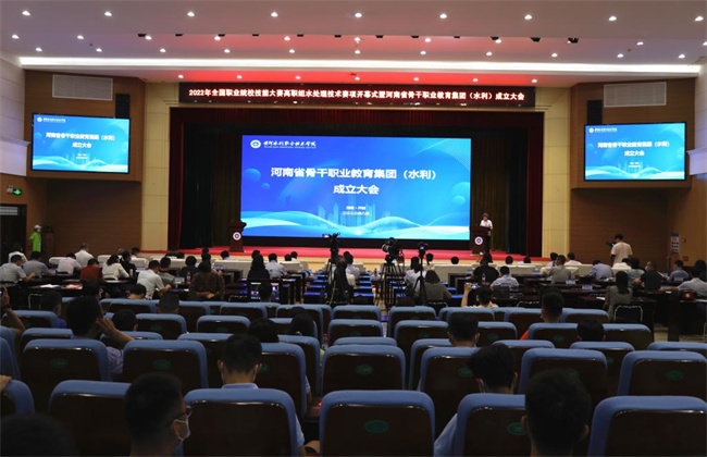 8月13日上午,由黄河水利职业技术学院牵头组建的河南省骨干职业教育集团(水利)成立大会在学生活动中心报告厅召开。教育部职业教育与成人教育司职业院校发展处处长任占营、中国水利教育协会会长张明俊、省教育厅副厅长陈垠亭、水利部黄委会黄河工会主席贺树明、开封市人民政府副市长刘震、省教育厅职业教育与成人教育处处长秦剑臣、三门峡黄河明珠(集团)有限公司副总经理王通战、中国水利水电第十一工程局有限公司总经理夏水芳、该校党委书记周保平及校长胡昊等领导线上线下出席成立大会。各高职院校、企业单位等集团成员单位领导、代表,师生代表参加成立大会。大会由周保平主持。
