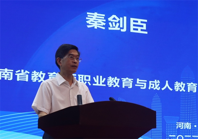 秦剑臣宣读河南省教育厅批准骨干职教集团成立决定