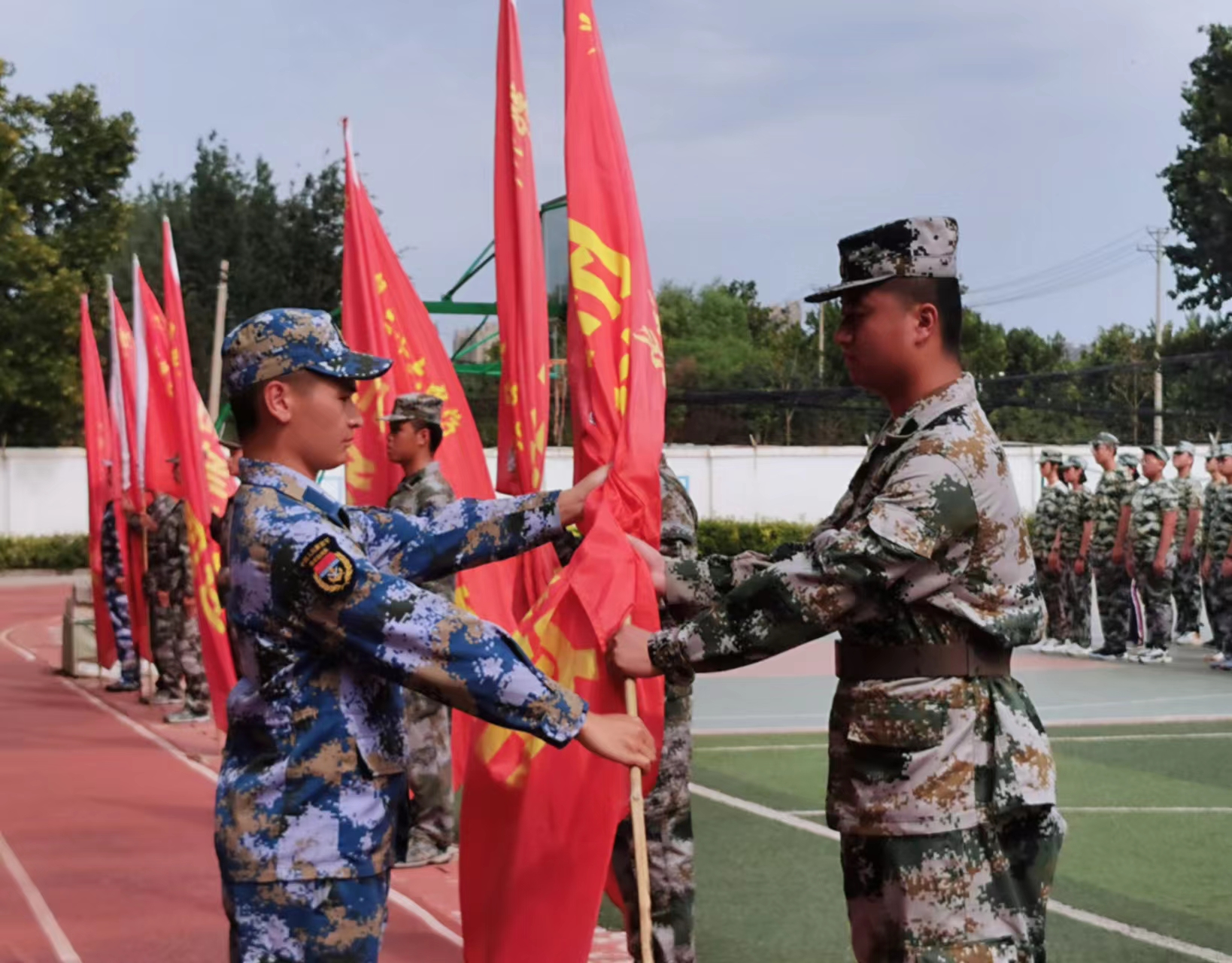 校长李刚聘任各军训连连长、政委,为各军训连授旗。一面面飘扬的班旗是热血青春的象征,是团结奋进的体现。