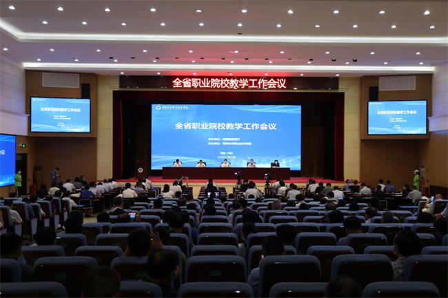8月17日上午,河南省职业院校教学工作会议在黄河水利职业技术学院召开。会议旨在全面落实全国、全省职业教育大会精神和新职教法要求,系统总结我省职业教育教学工作成就,分析新时期职业院校教学工作面临的新形势、新任务,围绕实施创新驱动、科教兴省、人才强省战略,高质量推进“人人持证、技能河南”建设,安排部署今后一个时期全省职业院校教学工作。省教育厅党组成员、副厅长陈垠亭,开封市人民政府副秘书长王亚文,省教育厅职业教育与成人教育处处长秦剑臣,黄河水利职业技术学院党委书记周保平,校长胡昊出席会议。副校长焦爱萍及各高职院校相关负责人,各省辖市、济源示范区、省直管县(市)教育局相关领导,省属中职学校主要负责人以及具有职业教育培养任务的本科学校部门负责人300余人参加会议。会议由秦剑臣主持。大会与全省高职学校主要领导干部研讨班同步举行,全省高职学校书记、校长通过视频连线方式在焦裕禄干部学院参加本次会议。