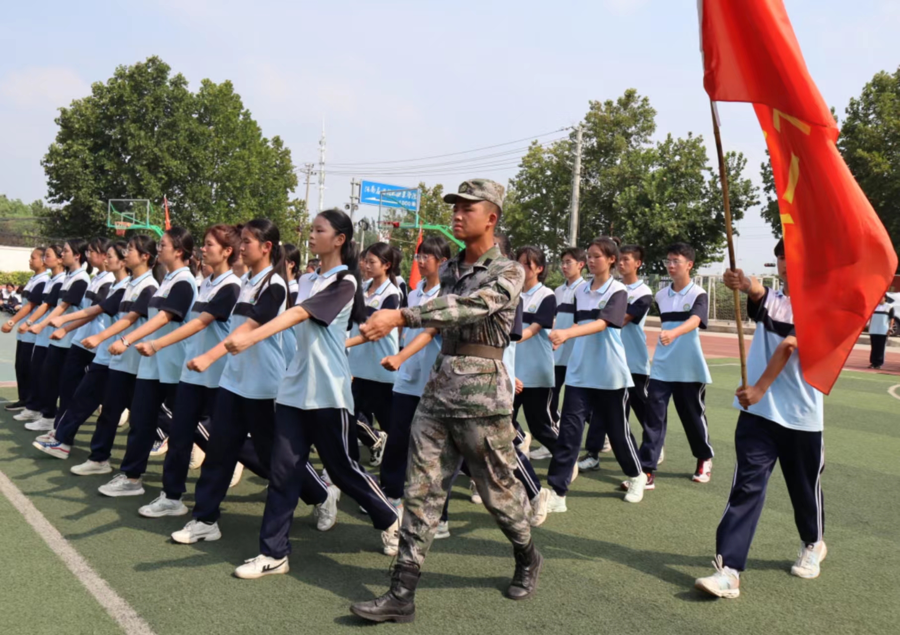 宝剑锋从磨砺出,梅花香自苦寒来。经过一周的军事训练,同学们的精神面貌焕然一新,意志品质和身体素质也得到了巨大的锤炼和提高。同学们,在高中三年星辰和大海的征途中,愿你们继续发扬不苦累,一切行动听指挥的光荣传统,严格规范自己的言行,努力进取、开拓创新,交出一份满意的人生答卷,无悔于这段热血激昂的岁月!