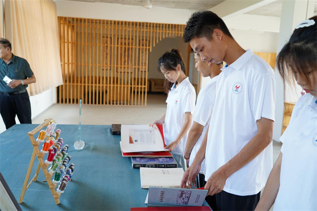 图为实践团成员在非遗体验馆翻阅《非物质文化遗产名录》,了解、学习非遗项目和非遗文化。王宛玲 摄