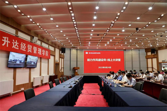 8月24日上午,河南省委教育工委、河南省教育厅举办第五期“能力作风建设年•线上大讲堂”,特邀厦门大学南强特聘教授、厦门大学原副校长、中国高等教育学会副会长、教育部高等学校专业设置与教学指导委员会副主任、全国高等院校质量保障联盟理事长邬大光,围绕“现代大学治理”做专题辅导。郑州升达经贸管理学院在行政楼国际会议厅设立分会场,校领导及中层以上干部聆听报告。