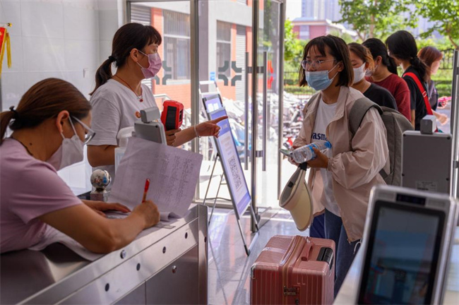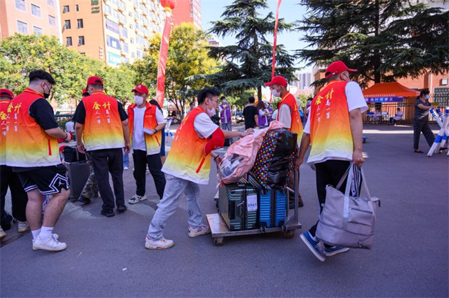 学校大门口,这时大批学生已陆续到来,各学院的接待点也都忙碌起来,随处可以看到党、团志愿服务队,在忙着帮新生拉行李。这里最辛苦的要数保卫科和健康中心的工作人员,他们早上六点多就到岗了。因为处于疫情防控期间,健康中心专门在大门口设置了疫情检测点和隔离点。保卫科的工作人员不仅要把好新生的安全进校关,还要负责对来送学生的车辆安排,指挥现场秩序,忙的满头是汗。学校工作人员和志愿者为新生提供的热情、周到服务,受到了新生和家长的交口称赞,令他们感受到升达园的亲切和热情。(王锋、胡晨阳、张状、张姗姗、曹子骞、焦唱凯、金籽硕)