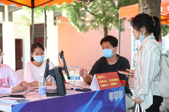 为了确保2022级迎接新生工作顺利有序进行,学校在郑州火车站西广场设立了新生接待处,组织了多辆大巴往返车站迎接新生。在校西大门南侧200米设立家长休息区。学生进校后即可刷脸注册,带着行李,乘坐免费摆渡车前往宿舍。学生在线上完成交费后,通过刷脸注册,就可以进入已经在线上选好的宿舍,操作非常便捷。学校数字化迎新系统运行几年来,各项优化措施大大减少了学生手续办理过程,实现了“让数据多跑路,让学生少跑腿”。