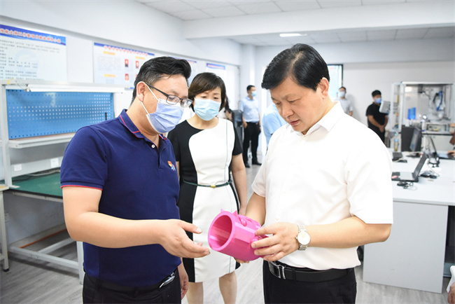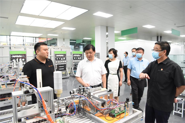走进校园,黄旭东察看了学校规划布局与建设,前往实训中心与师生们亲切交流,了解师资力量配备、专业设置、学生学习及就业前景等情况。