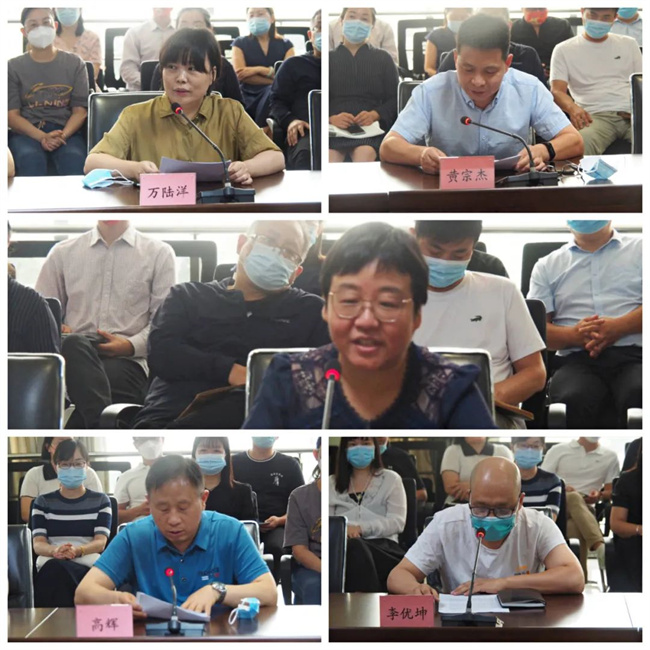 优秀教师代表万陆洋、优秀教育工作者代表黄宗杰、师德先进个人代表高辉、从教工作满30年教师代表姚虹、高层次人才代表李优坤博士分别围绕“迎接党的二十大 培根铸魂育新人 ”主题,结合自身实际,畅谈工作体会,分享教育教学经验,与大家共谋学校发展愿景。