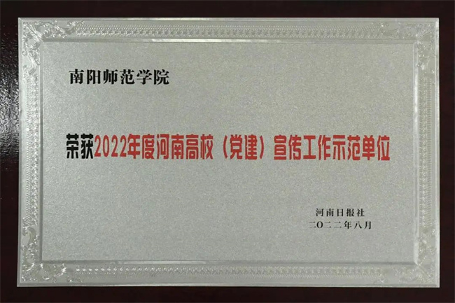据悉,评选活动自今年3月份启动以来,全省140多所大中专院校和近百个先进人物参评,经过网络投票和专家评审,最终推选出“2022年度社会认可的河南高等教育品牌院校”和“2022年度河南高校(党建)宣传工作示范单位”等奖项。(南阳师范学院供稿)