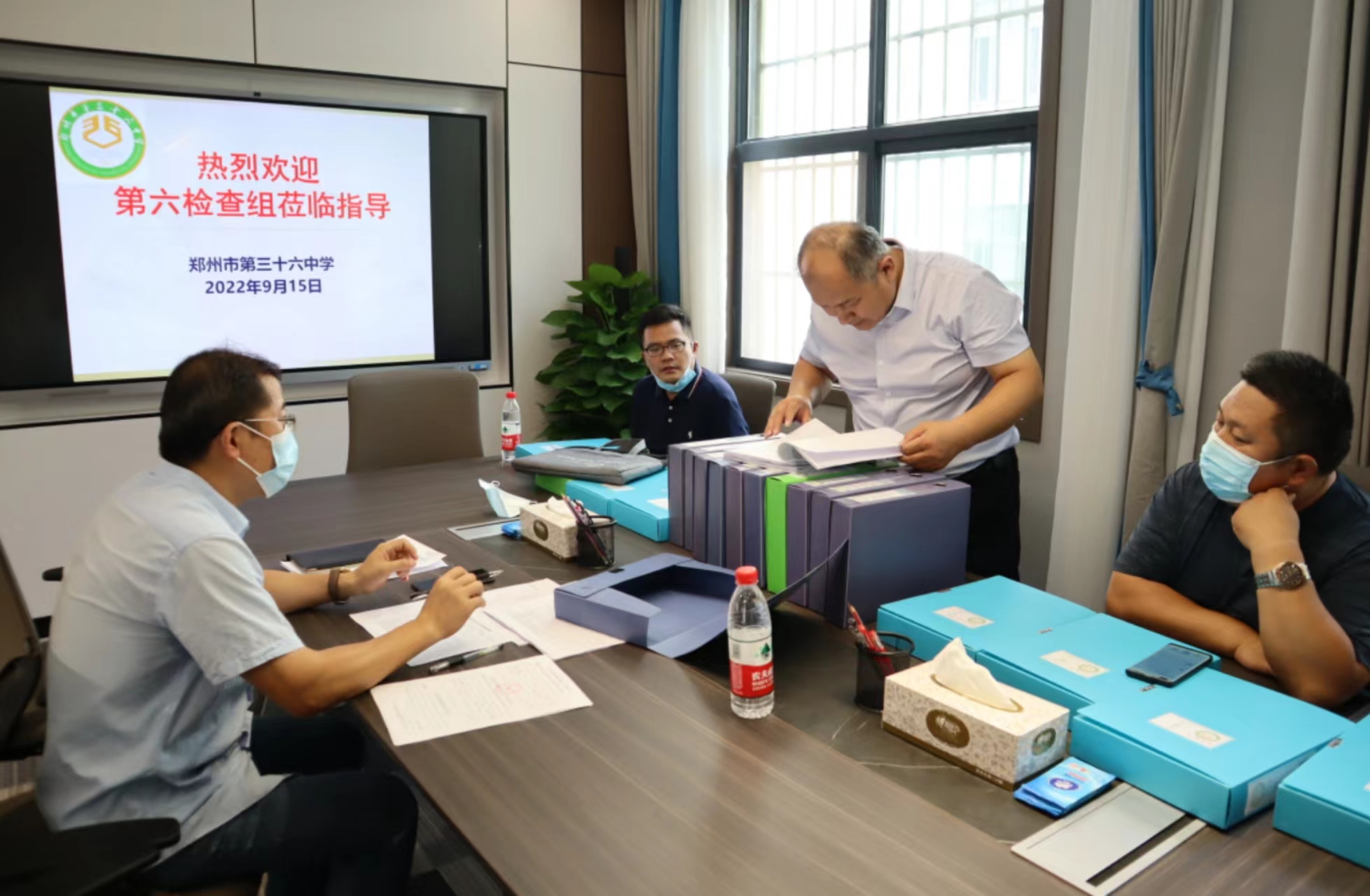 2022年9月15日下午,中原区教育局秋季校园安全工作大检查第六检查组组长刘军选等一行三人到郑州市第三十六中学进行校园安全工作大检查。