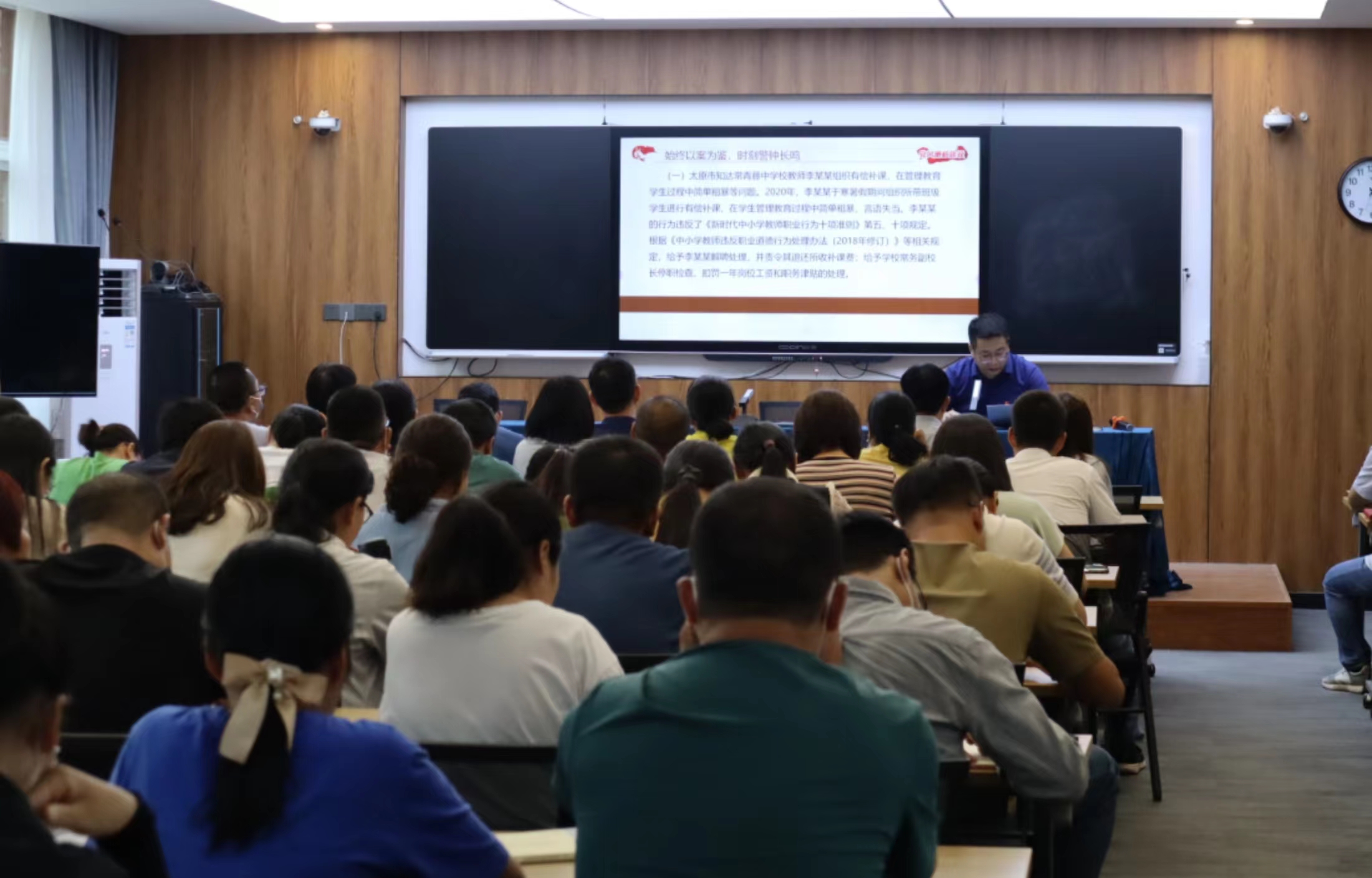 为加强新时代党员教师党风廉政教育,提升廉洁自律意识,深入推进清廉学校建设,2022年9月13日下午,郑州市第三十六中学党支部书记李杰为全体教职工上了一堂题为《知敬畏、存戒惧、守底线,永葆教师清正廉洁本色》,内涵丰富、意义深刻的廉政党课。
