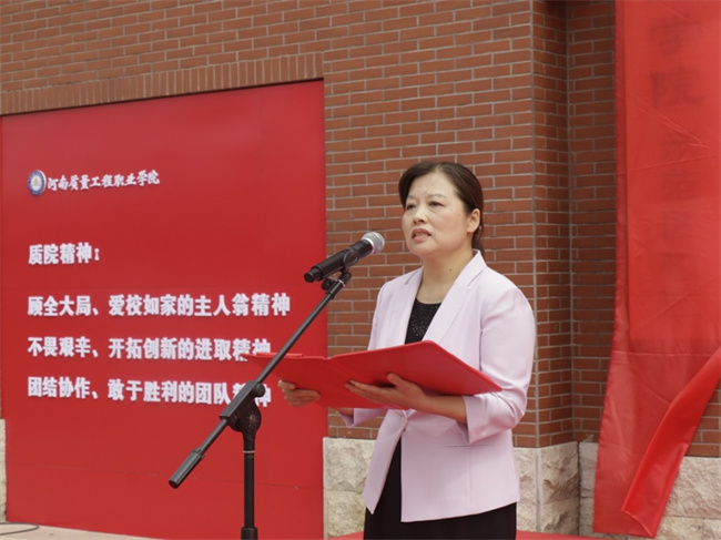 仪式上,邱红标和张毅共同为示范区校区进行揭牌。李志萍和陈淑雅分别代表河南质量工程职业学院和城乡一体化示范区致辞。