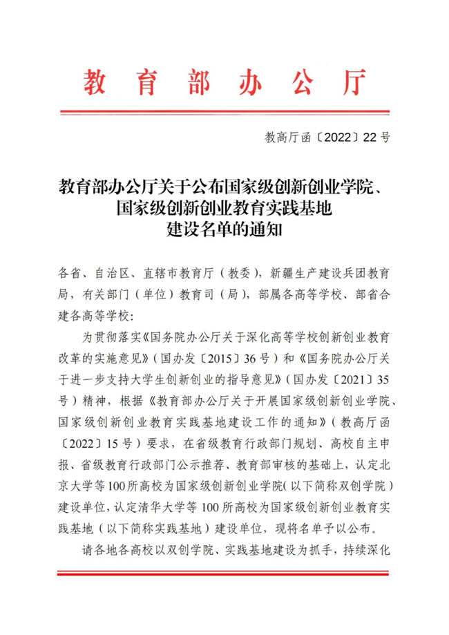 近日,教育部印发《关于公布国家级创新创业学院、国家级创新创业教育实践基地建设单位名单的通知》(教高厅函〔2022〕22号),黄河水利职业技术学院创新创业学院入选首批国家级创新创业学院建设单位,是首批入选的9所高职院校之一。此次入选,是学校持续深化创新创业教育改革取得的又一重大成果。