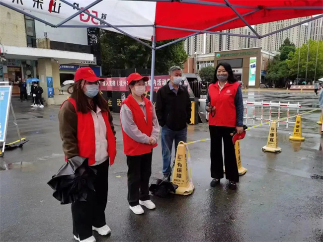 校长卢奎还亲切看望了现场值班教师和志愿者,向国庆假期依然坚守在岗位的值班值守人员和志愿者致以节日慰问和诚挚感谢。同时为值班人员送上爱心雨伞,提醒大家及时添加衣物,做好防寒保暖。