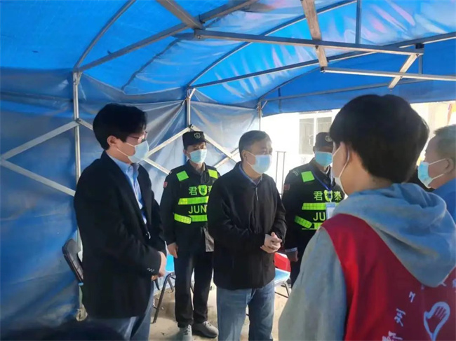 校长卢奎每到一处,都详细查看学生进出校园管理情况、门岗值班值守、生活防疫物资储备等情况,详细询问师生假期动向、留校师生管理、学生返校核查等情况,对学校疫情防控和安全稳定工作进行了深入细致指导。