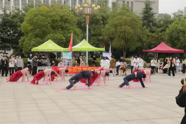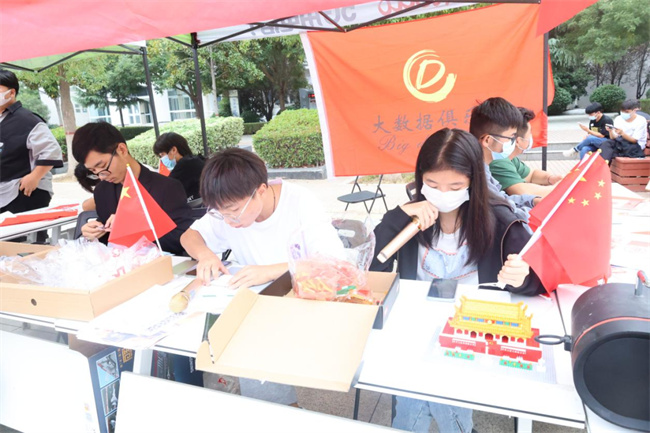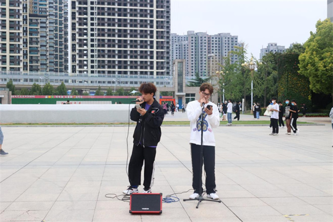 知行广场上,社团专业技能展、青春才艺展如期举行。优美瑜伽、劲酷街舞、花样轮滑、卡丁车体验、机器人表演、无人机展飞、传统文化剪纸……各色各样的学生社团纷纷拿出“看家本领”,展演“炸翻”全场,吸引了大批师生驻足,师生们手持国旗、身贴国旗贴纸,为校园增添了一抹欢庆色彩。
