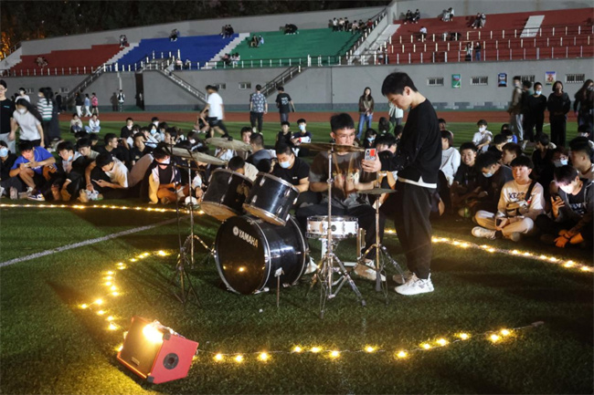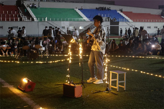 夜幕降临,机电学子来到西田径场,共赴一场草坪音乐节之约。灯光点点,席地而坐,聆听美妙的音乐,感受欢快的音律,享受美满的国庆假期。