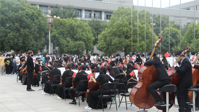 10月2日,在汇文湖畔,音乐学院师生以一首《歌唱祖国》拉开了露天音乐会帷幕,从红色经典到世界名曲,为师生们带来了一场高雅音乐盛宴,用音乐为祖国母亲送上最真挚的祝福,奏响学校朝着第三次创业目标奋进的乐章。