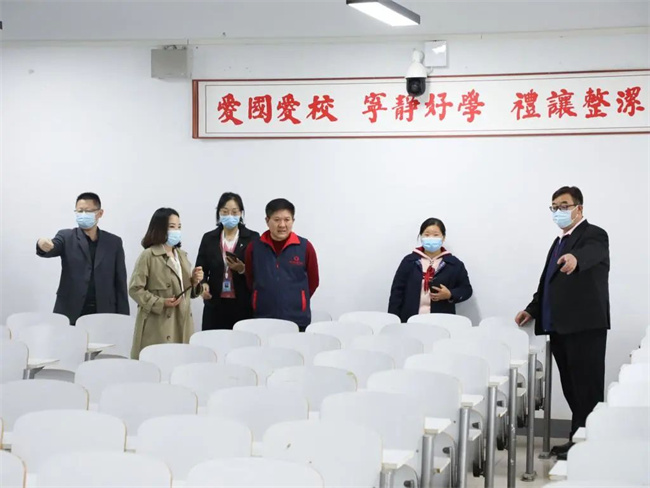 巡视校园设施配备、水电安全、环境卫生以及安全隐患,现场解决问题的校领导们。