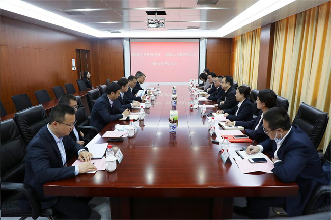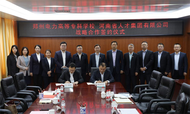 10月12日,河南省人才集团有限公司党委书记、总经理张东红,党委委员、副总经理王利军一行到郑州电力高等专科学校调研,并签订战略合作协议。校长杨建华、河南省电力公司高级专家(一级)邓启民、三级职员杨小琨、河南省电力公司高级专家(二级)张勇,学校人力资源部、发展质量部、招生就业处负责同志出席签约仪式。