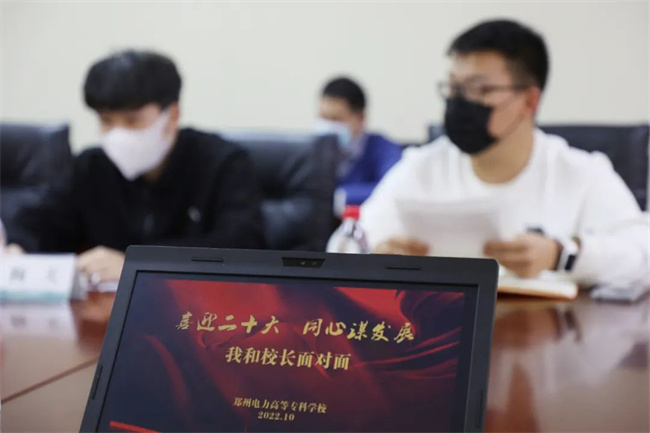 为进一步深入听取学生对学校发展的意见、建议,更好搭建学校与学生沟通的平台,满足青年学生成长成才的需求,提升学校管理服务水平,10月13日下午,郑州电力高等专科学校“喜迎二十大 同心谋发展”第一期“我与校长面对面”座谈交流活动在办公楼三楼会议室顺利举行。学校校长杨建华、学生处、教务处、招生就业处、后勤服务中心、团委、图书馆、信息中心等相关职能部门负责人与来自不同年级、不同专业的15名学生代表面对面交流,倾听学生心声,共话学校建设发展。会议由副校长黄鹏主持。
