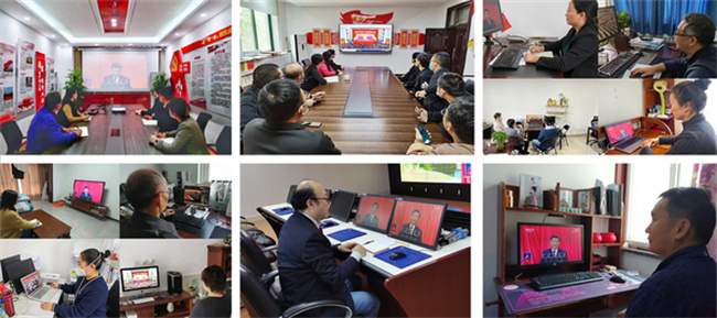校领导黄荣杰、魏世忠、刘新田、苏东民、张晓根、白艳红,以及党委理论学习中心组成员在办公楼316会议室通过中心组学习的形式观看大会开幕会。