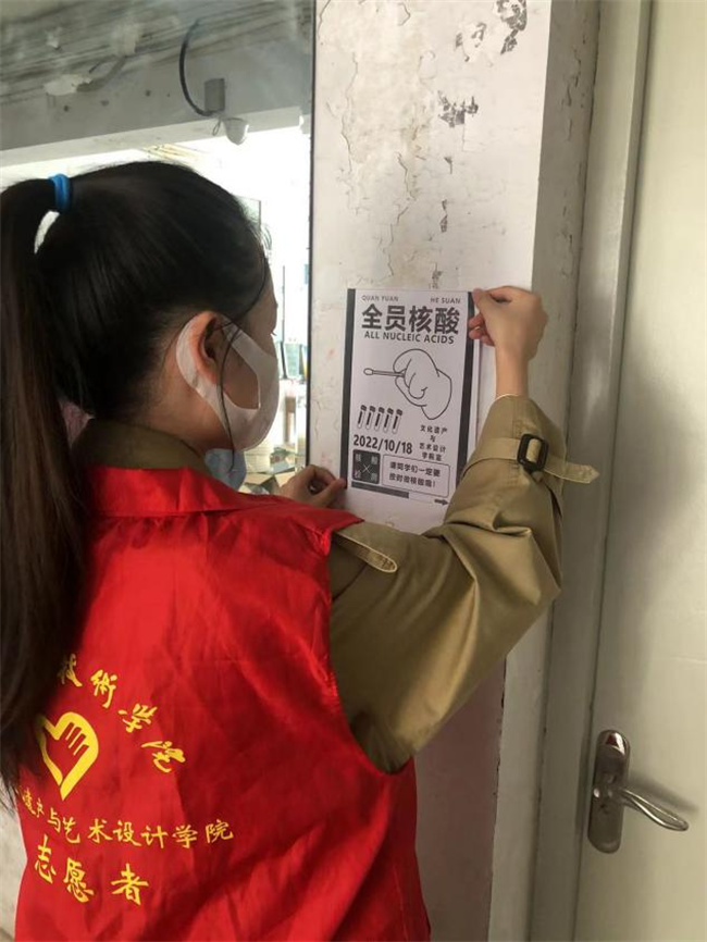 “作为一名党员,我们就要关键时候站出来、顶上去。”文化遗产与艺术设计学院分团委学生副书记马佳浍这样说道。马佳浍同学在这个关键的时期以身作则,每天早上都能看到她带领分团委干事和先锋队志愿者们冲锋在防疫的第一线,参与到学院每一轮核酸检测工作中,帮助同学们解决在核酸检测中遇到的各种问题;关注着同学们的心理健康情况,走入寝室与同学们交流,解答同学们的问题,承担起老师与同学们沟通的桥梁,更在防疫工作中奉献着自己的力量。在每天进行防疫工作的同时,也没有忘记提高自身能力,努力学习,在课堂上积极与老师互动、认真听讲。课下认真完成作业,自主在各个学习平台拓展自己知识面,一步一步地完成自己的考公务员目标,完成自己的规划,在各处彰显着当代大学生的青春风采和使命担当。