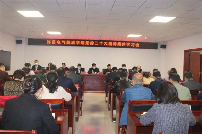 10月28日上午,许昌电气职业学院在行政楼第三会议室召开学习贯彻党的二十大精神集体学习会。党委书记彭占亭作专题辅导报告,并对学院深入学习宣传贯彻党的二十大精神进行安排部署。全体领导班子成员杨德岭、张明慧、张贵军、商淑敏、张晓华、朱东煜、张俊才出席会议,正科级以上中层干部参加学习会,会议由党委副书记张明慧主持。