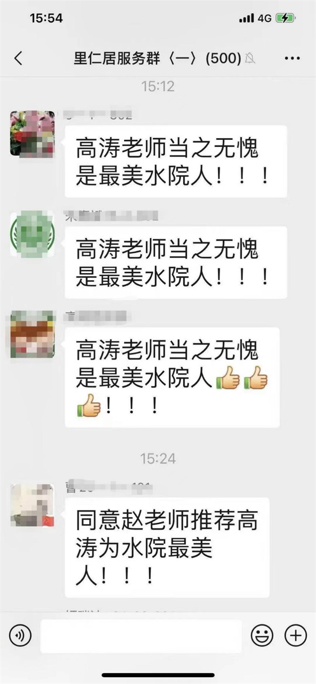 有几次,晚上11点多了,忙了一天的高老师正准备休息,又接到紧急通知有密接者,他又立刻穿好衣服配合社区转运相关人员、到相关单元住户贴好封条,做完这一切又到凌晨了。“封控已经八天了,每天这样高强度的工作,累吗?”面对我们的电话采访,电话那头传来一声憨笑,沉默了几秒,“累呀,我都不敢往办公室里坐,一坐就想瞌睡,可是疫情当前,师生公寓内大大小小的事总得有人操心、有人具体来做,作为一名普通的共产党员,我能做的就是尽全力做好我的本职工作、做好小区里教职工家属的服务保障,老师们教课任务重,疫情防控要求足不出户,我也不想教师志愿者更多地出来,有风险,我能多做点就多做点。”多么朴实的话呀,能多做点就多做点,疫情下,高老师从师生公寓服务中心的工作员又变成了“信息员”“快递员”…… 他的付出,教职工和家属们都看在眼里、记在心上,“高老师,辛苦了!”“高老师,你是最美水院人!”“高老师,给你点赞!”……一句句感谢、一声声夸赞,是1200多户居民的真挚心声。“每当听到老师们道谢的话,我都会觉得自己的努力没有白费,能为战胜疫情贡献一份力量,是我的骄傲!”高涛老师如是说。