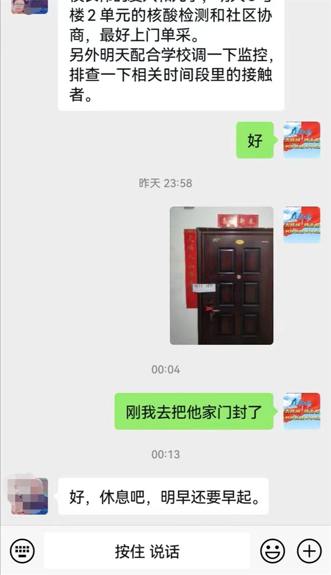 忙完这些,高老师回到办公室,还没来得及喘口气,这时他的手机铃声就开始不断响起。“高老师,我在网上订的菜,您给看看送到大门口了吗?”“高老师,我下午没课,可以去当志愿者,您给安排一下!”“高老师,家里老人的药不能断,如果送的药到了,请您给安排送一下。”“高老师,家人今天出院回家,您帮忙给社区协调一下,咋回来呀?”……这样的电话,他每天能接100多个。除了电话,他还得在微信群里及时发核酸检测信息、防控要求,回复老师及家属的各种问题。用他的话说:“一有空,我就得给手机充上电,身上带块充电宝,防止手机没电了耽误大家的事。大家都按要求足不出户,我得努力做好这1200多户的服务工作,尽全力保障大家的正常生活。”